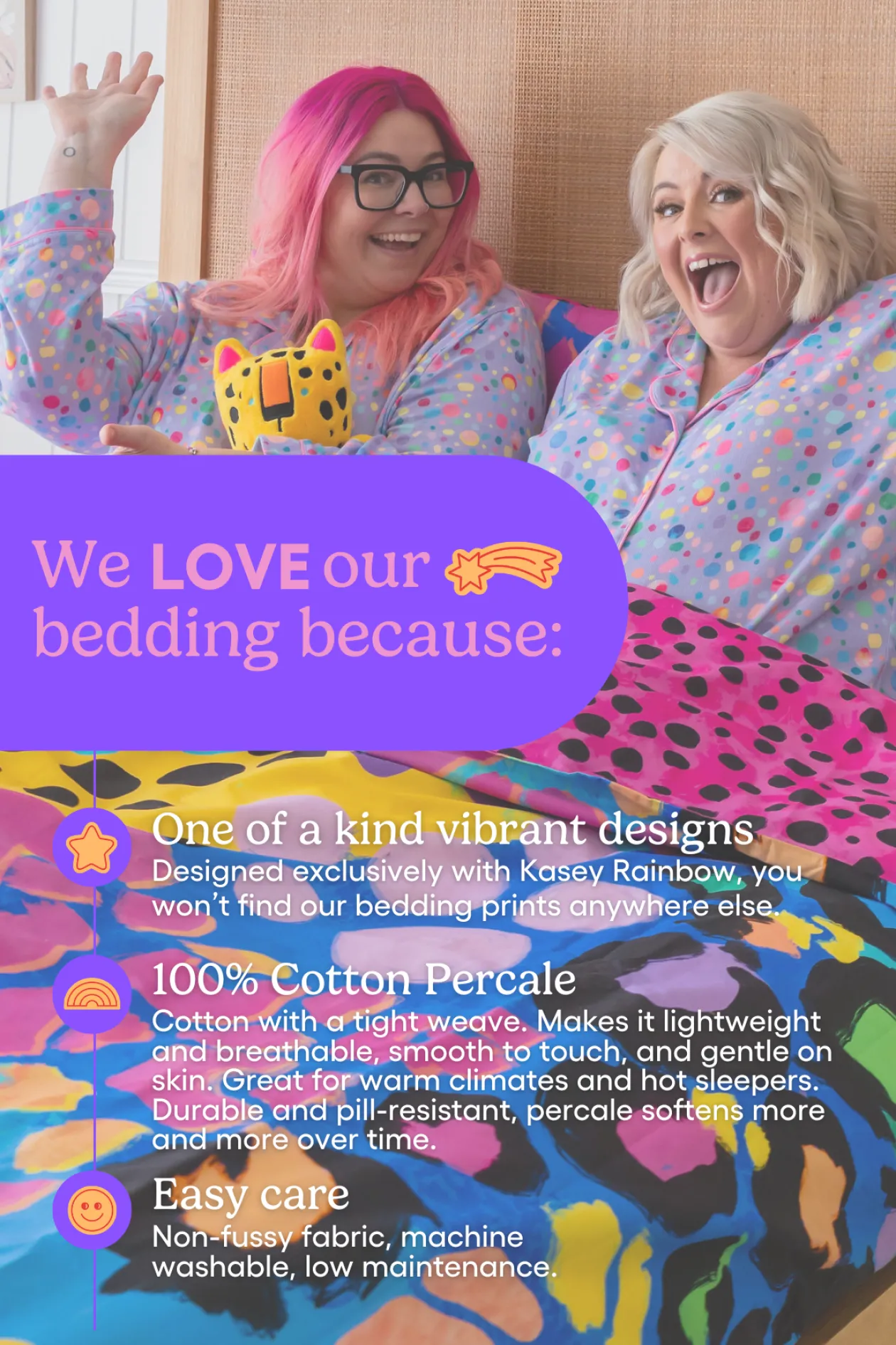 - One of a kind vibrant designs. Designed exclusively with Kasey Rainbow, you won’t find our bedding prints anywhere else.