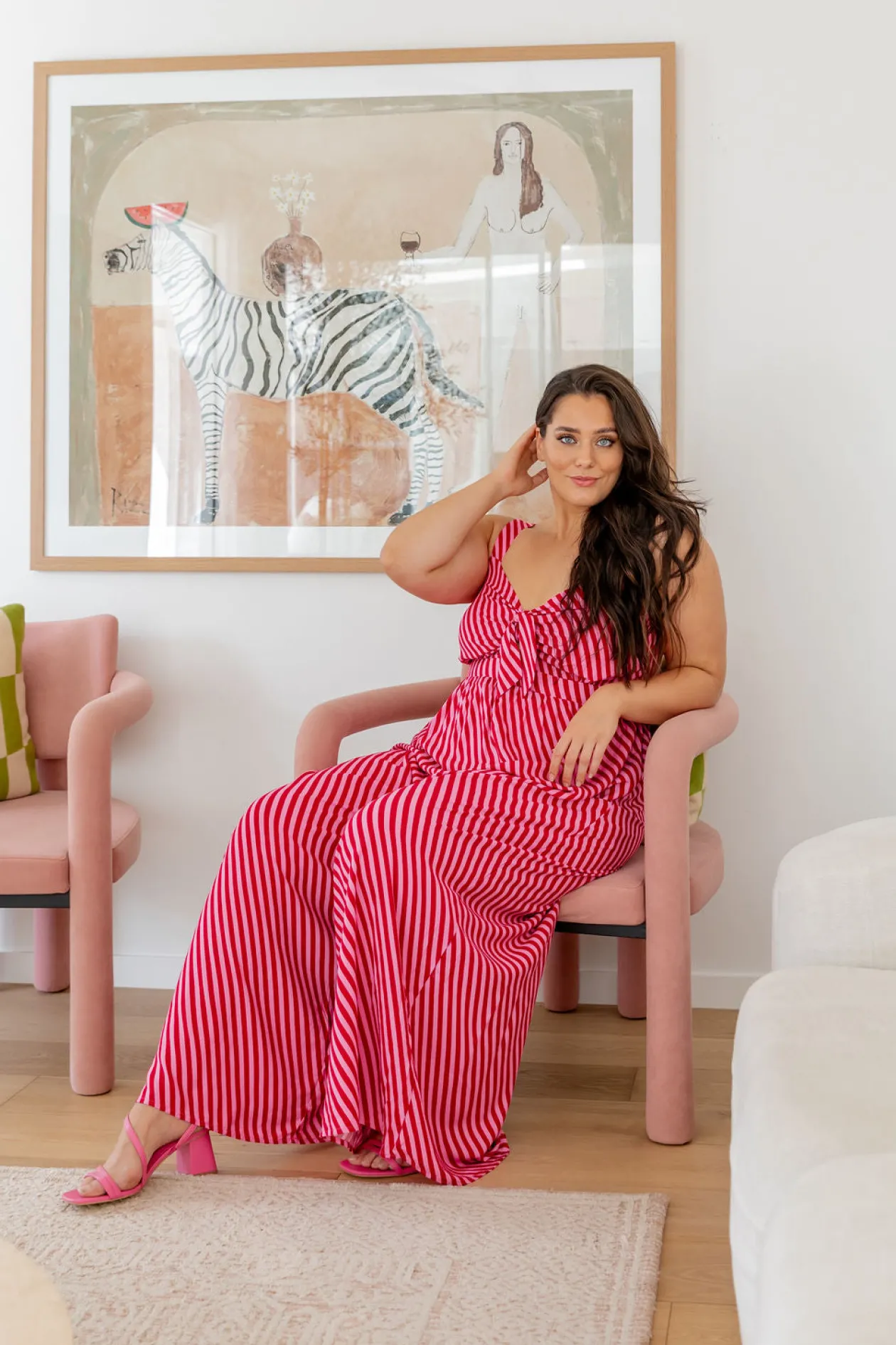Say hello to the Christina Jumpsuit in Candy Stripe Red/Pink—a playful twist on classic chic! With a flattering V-neckline and a cheeky cut-out under the bust, this jumpsuit is all about laid-back glam. Adjustable, bra-friendly straps and a tailored back give the perfect fit, while wide-leg pants and pockets keep it comfy and practical. Ready to turn heads wherever you go? You bet!