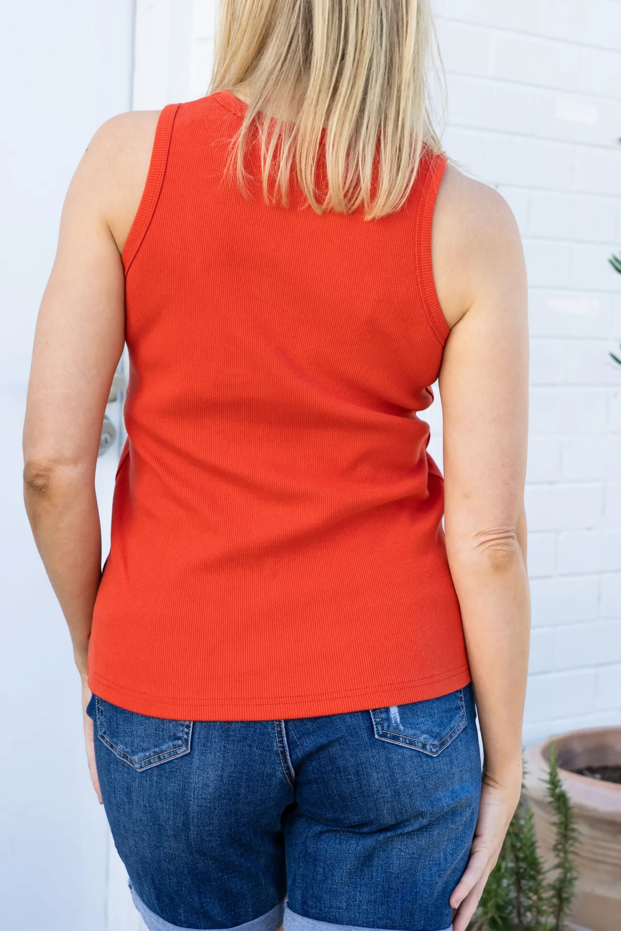 The Kira tank is back – and better than ever! This re-imagined fave is the same cut you loved, but with added length (you asked, we listened!). This ribbed tank is perfect for layering or to wear on its own. It’s stretchy and super comfy.