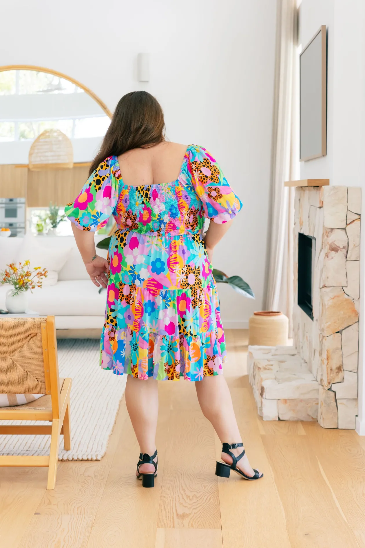Get ready to shine in the Peri Party Dress in Floral Fancy! This delightful dress features a flattering V-neckline and a beautifully shirred bust that hugs your curves just right. The puff sleeves with elastic cuffs add a playful touch, while the tiered hem creates a fun, twirling effect. Wear it on or off the shoulder to match your mood—this dress is ready for any occasion!